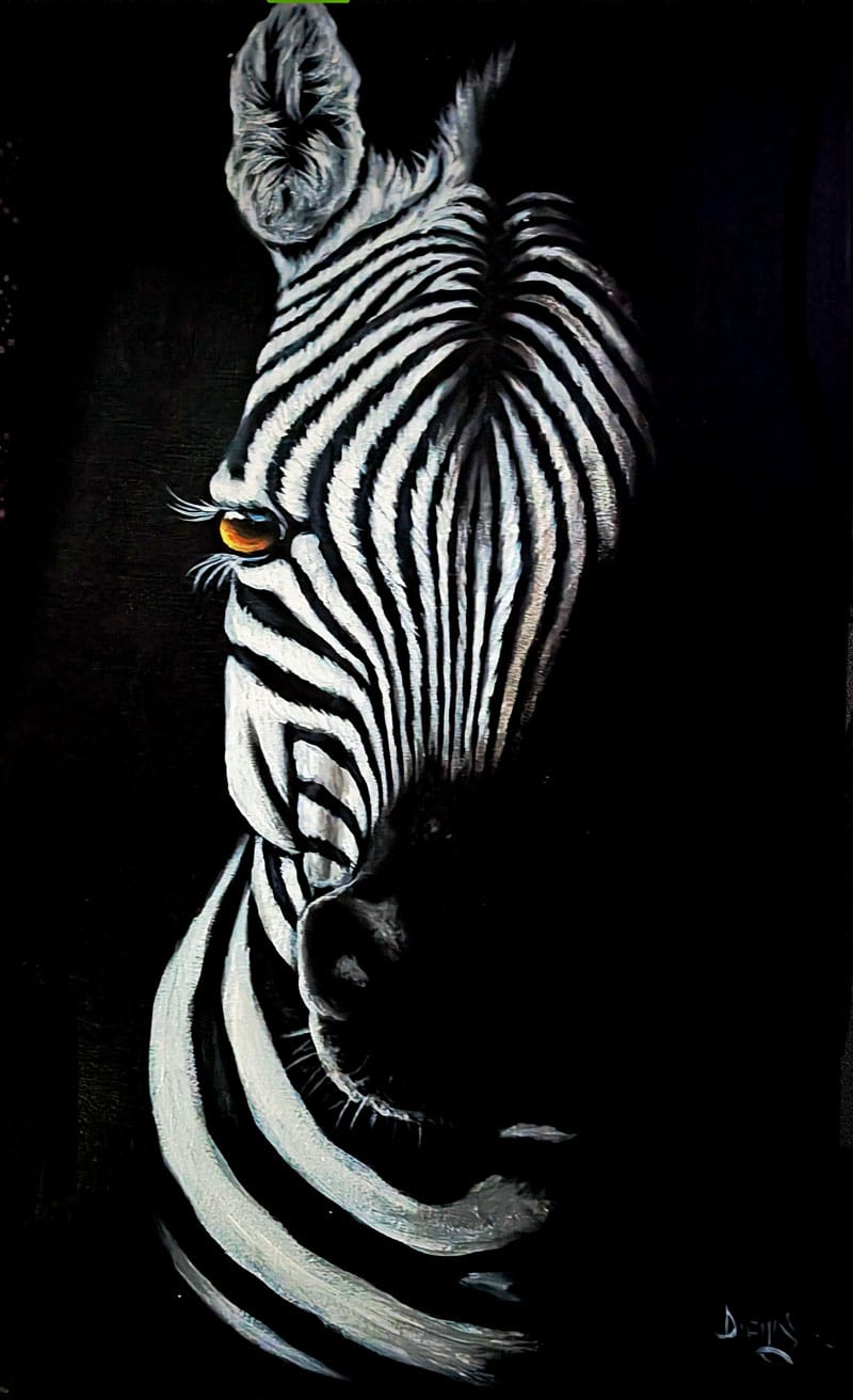 Stunning 12″ x 20″ original painting of a Black and White Zebra
