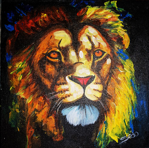 Beautiful 12″ x 12″ original painting of the King of the Jungle…the Lion
