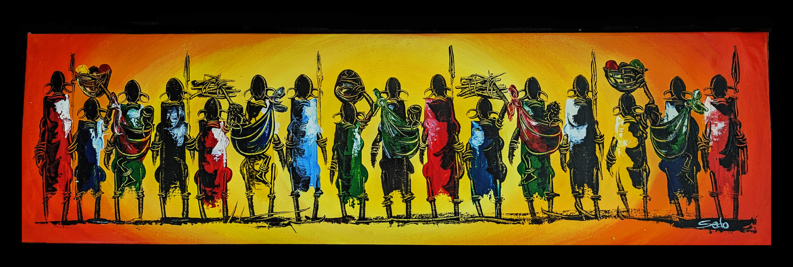 Palette knife art of the Masai art is perfect for any room in your home or office.