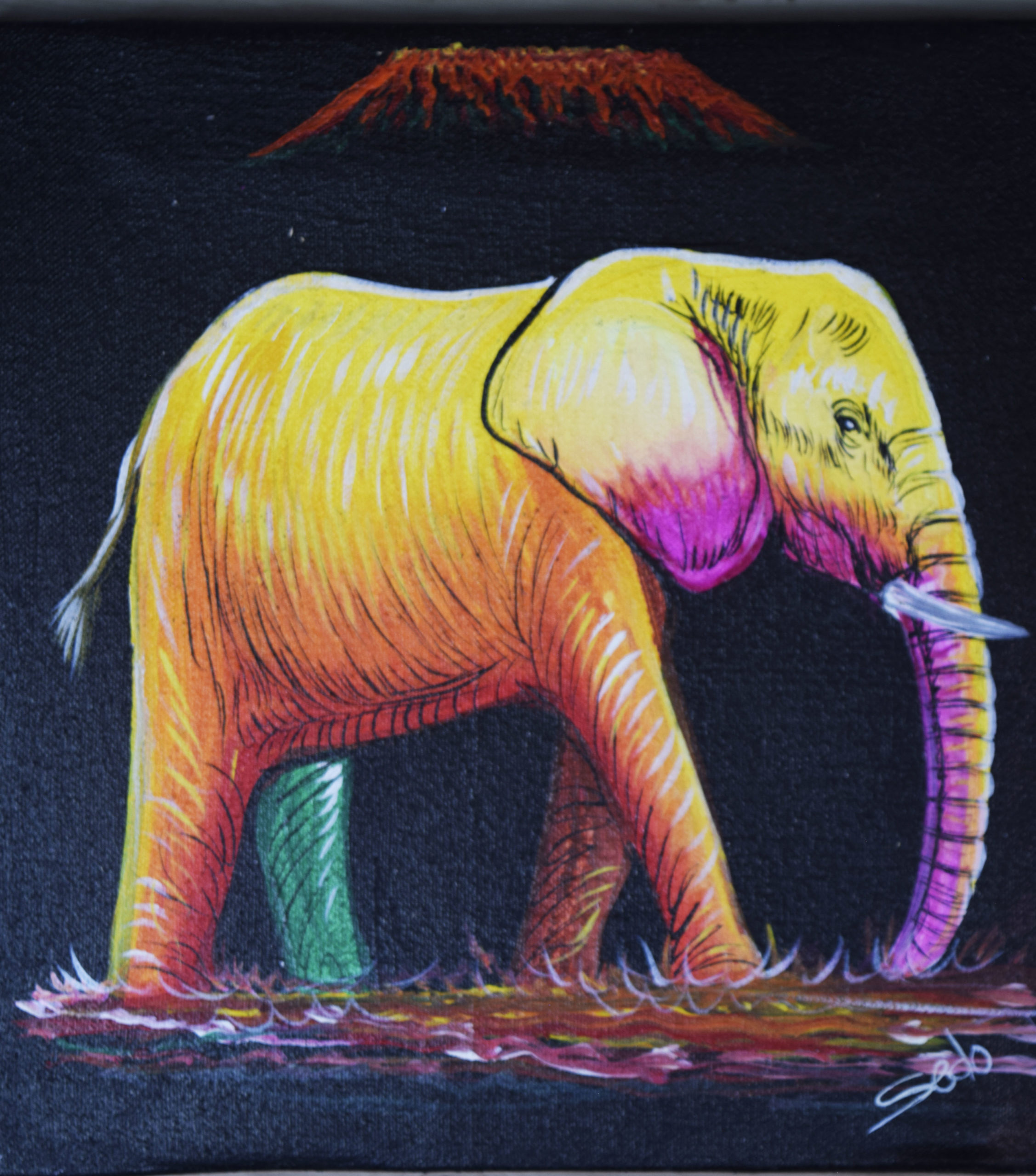 Beautiful 12″ x 12″ original painting of the lone elephant.