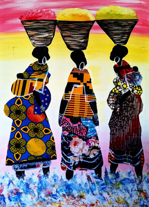 Three women returning from the market